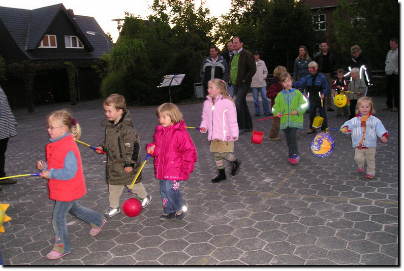 Der Umzug begann um 17.00 Uhr am Heimat- und Bürgerhaus Bahnhof Darfeld. Viele Kinder begleiteten mit Ihren Eltern und Laternen den hl. Mann mit seinem Pferd, Knecht Ruprecht und der Musikkapelle der Freiw. Feuerwehr Darfeld vom "Bahnhof" zur Dorfmitte.