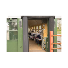 Backhauses als auch die restaurierten Bahnwaggons von den Besuchern in