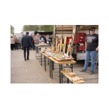 Stände mit Osterdekorationen, Handwerkskünsten, moderner Kunst, Informativem